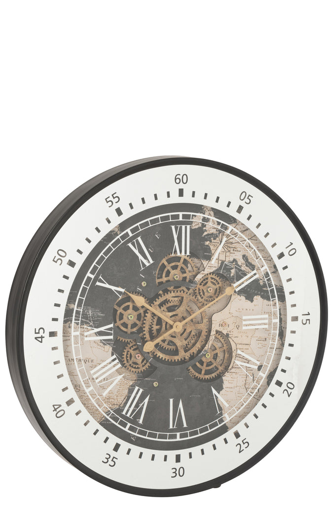 Klok+Spiegel Wereldkaart Mdf Zwart