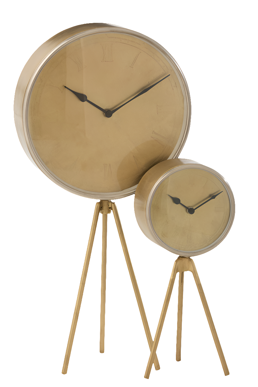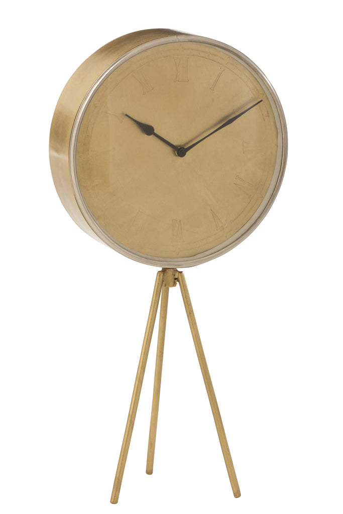 Klok Op Statief IJzer Goud Groot