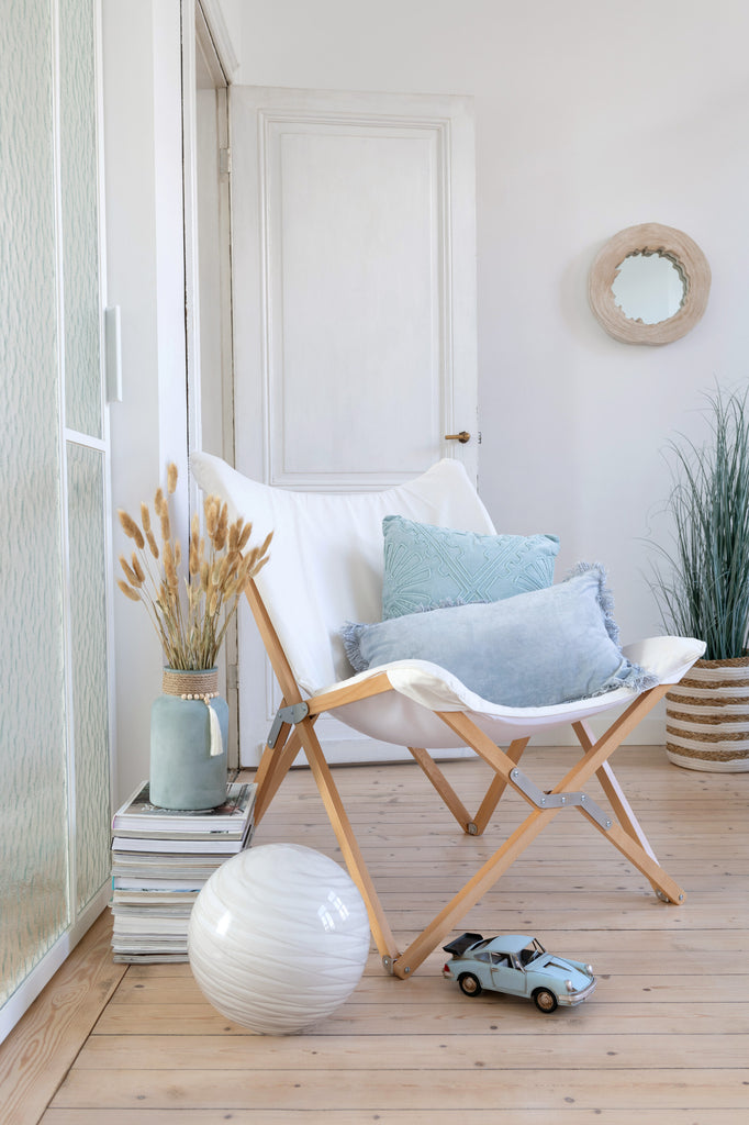 Kussen Fringe Katoen Fluweel Blauw