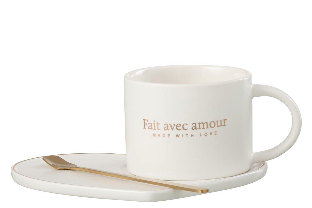 Mok + Schaal + Lepel Hart Porselein Frans Wit
