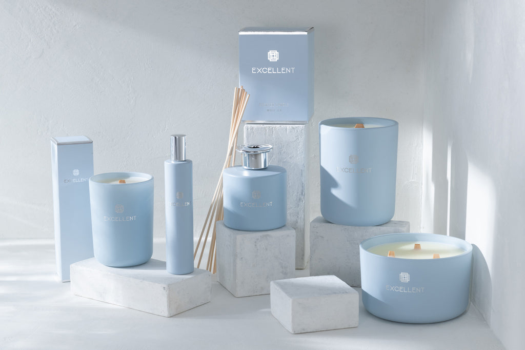 Geurkaars Excellent Glass Lichtblauw Groen Medium-80U