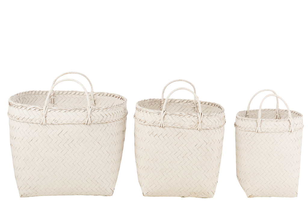 Set van 3 manden vierkant rotan wit