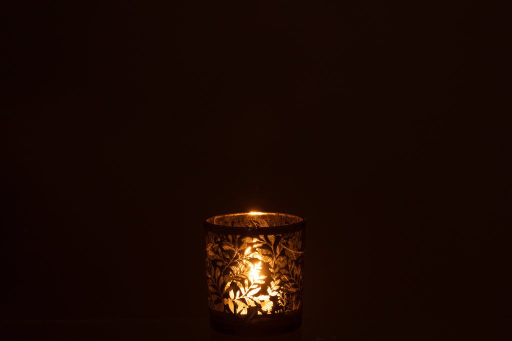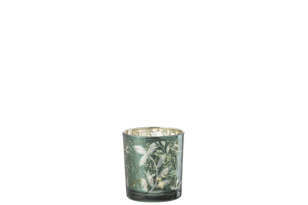 Theelichthouder Bladeren Glas Groen/Antiek Goud Klein
