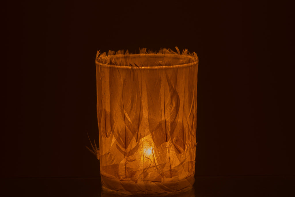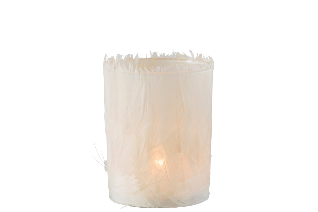 Theelichthouder Veren Glas Crème Groot