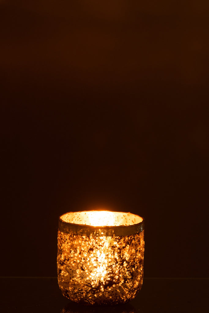Theelichthouder Frosty Rond Glas Oud Roze Medium