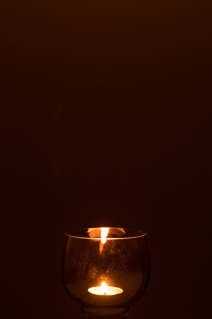 Theelichthouder Rond Glas Rook Geel/Zilver Klein