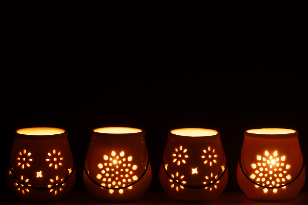 Theelichthouder Emmer Motieven Porselein Geel Assortiment Van 4